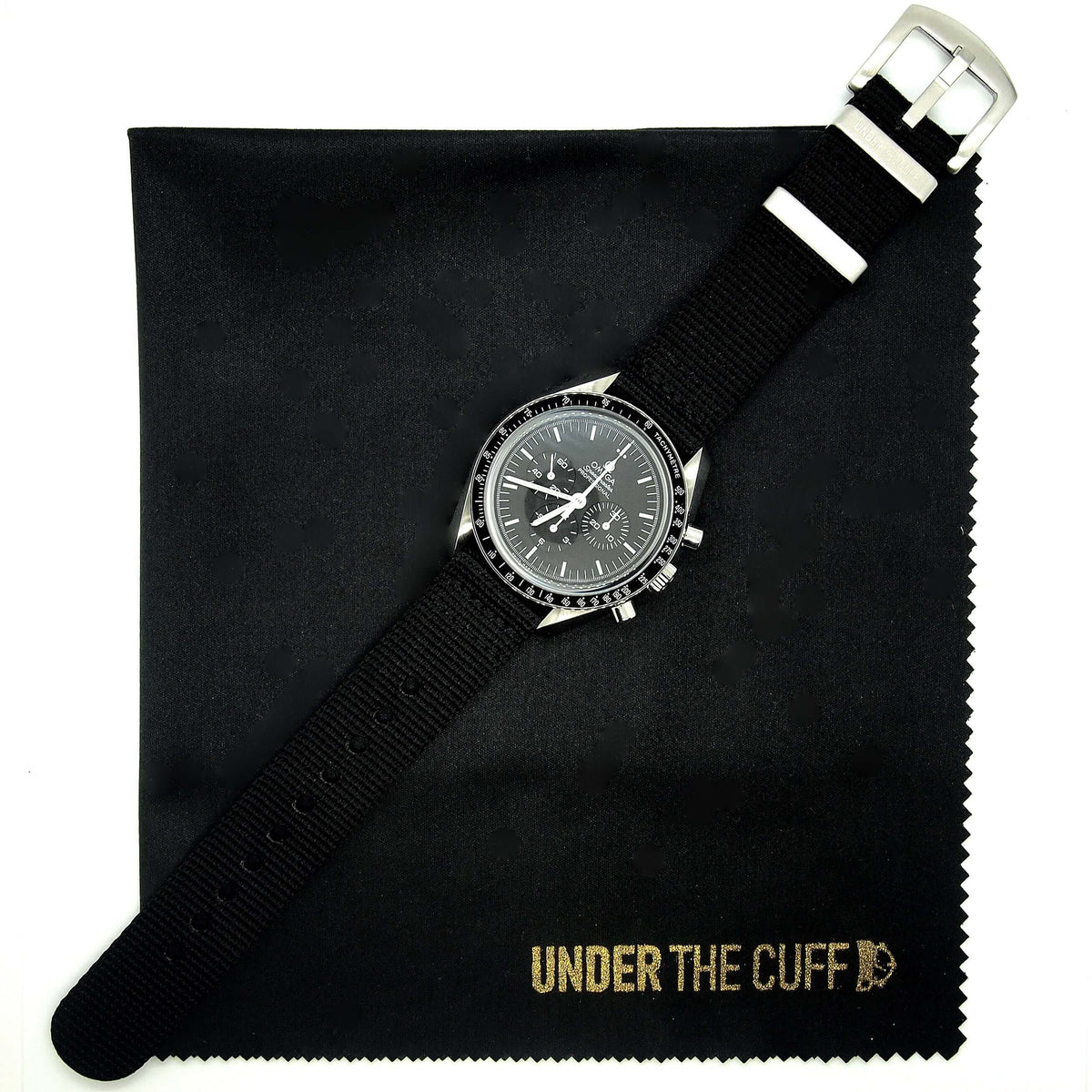 Our pins and buckles are always made from single piece, machined 304L Stainless Steel, not the stamped and bent mild steels of inferior brands. Our tolerances are finer and the material is stronger. The retaining hoops are also made from high quality stainless steel and subtly laser etched with the Under The Cuff text logo.